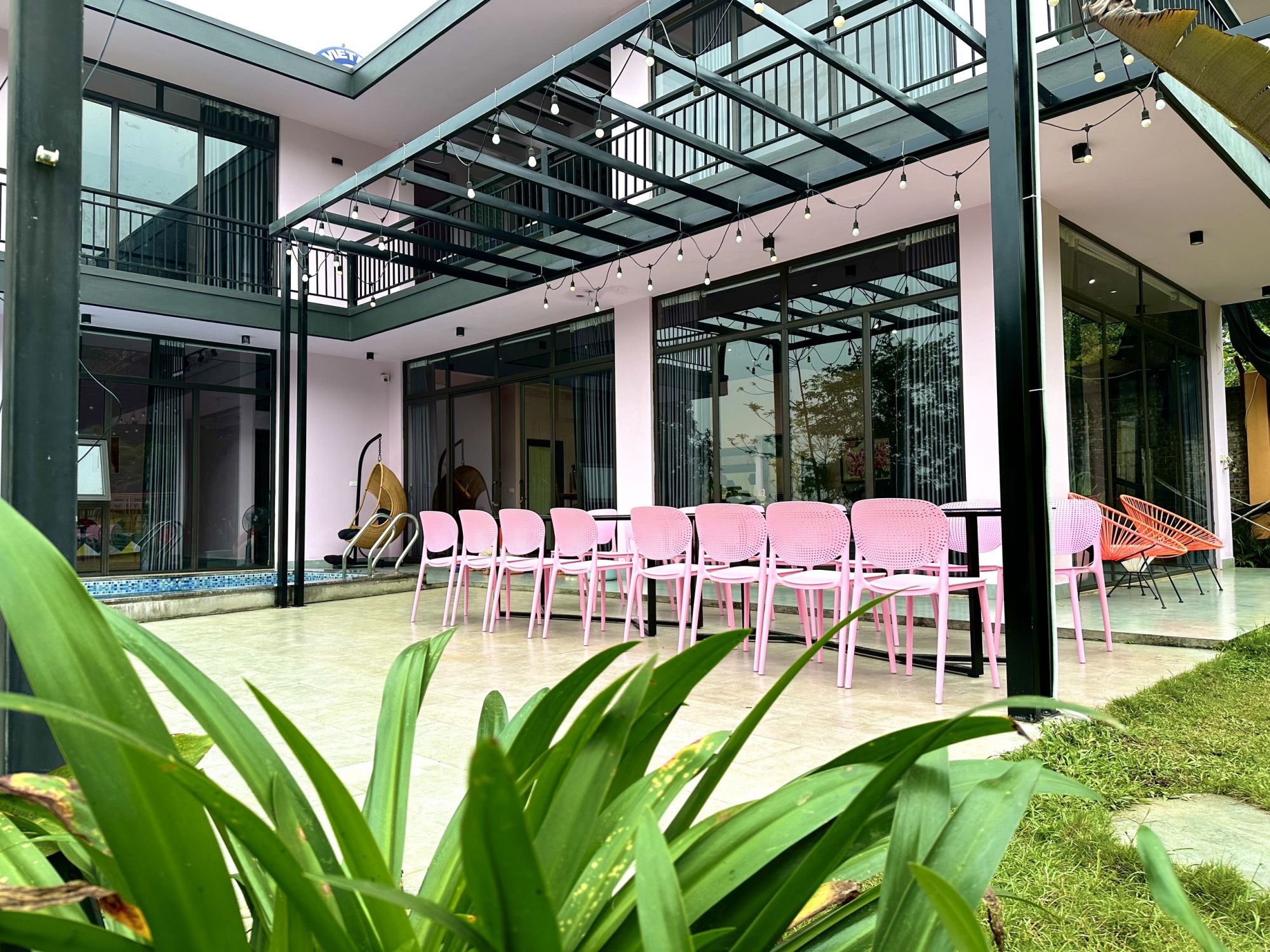 - Sân nướng BBQ được chuẩn bị bàn ăn ngoài trời, bếp nướng sử dụng miễn phí
