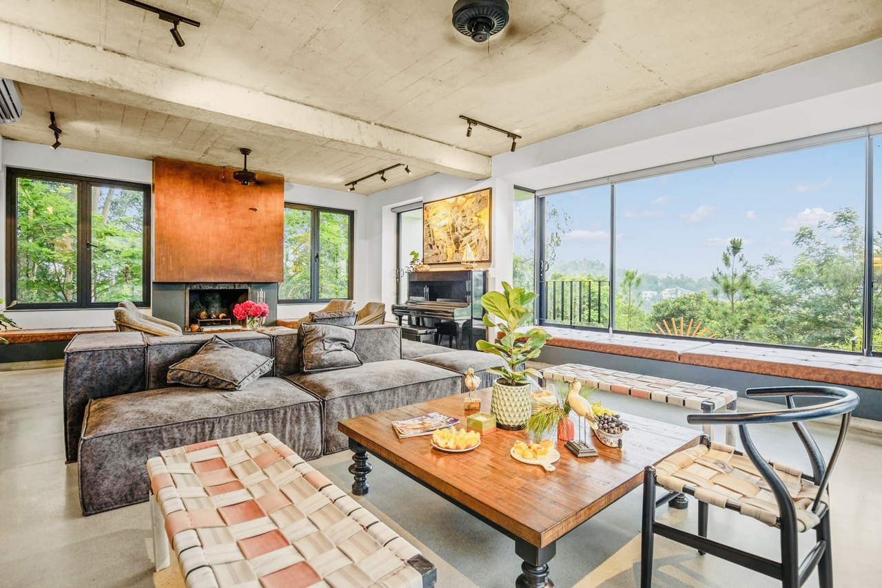 - Phòng giải trí có bàn bi-a và lò sưởi, có lối đi ra bãi cỏ.