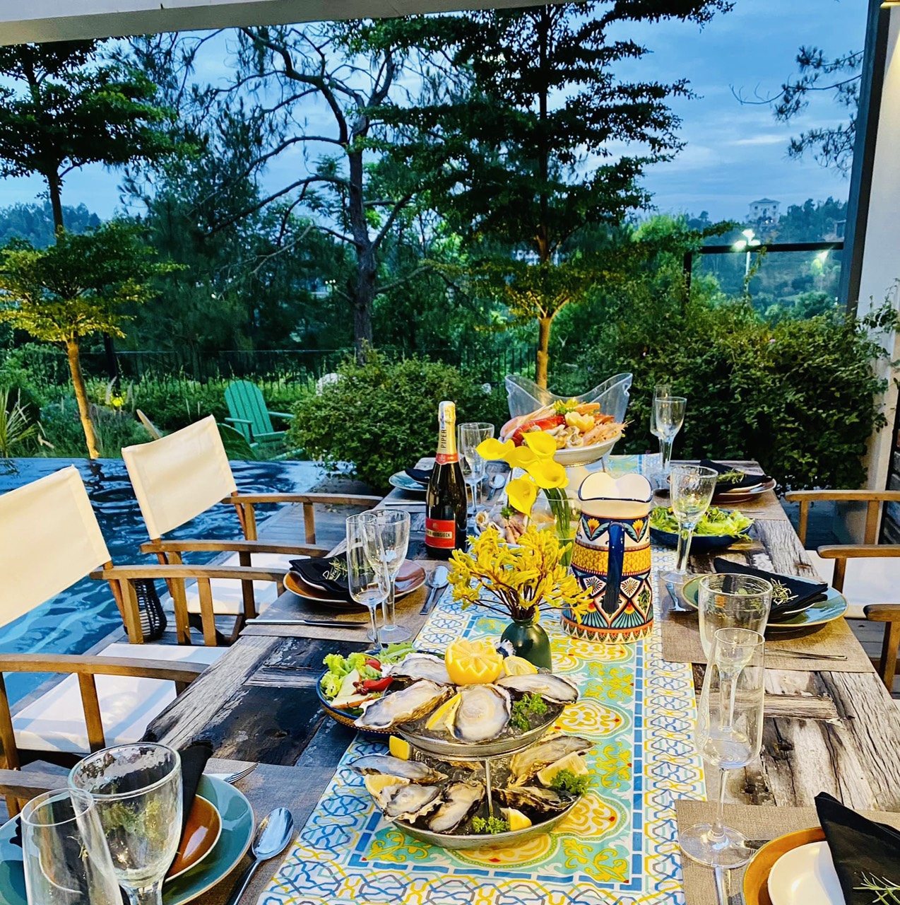 - Khu vực nướng BBQ ngoài trời có bếp nướng và bàn ăn